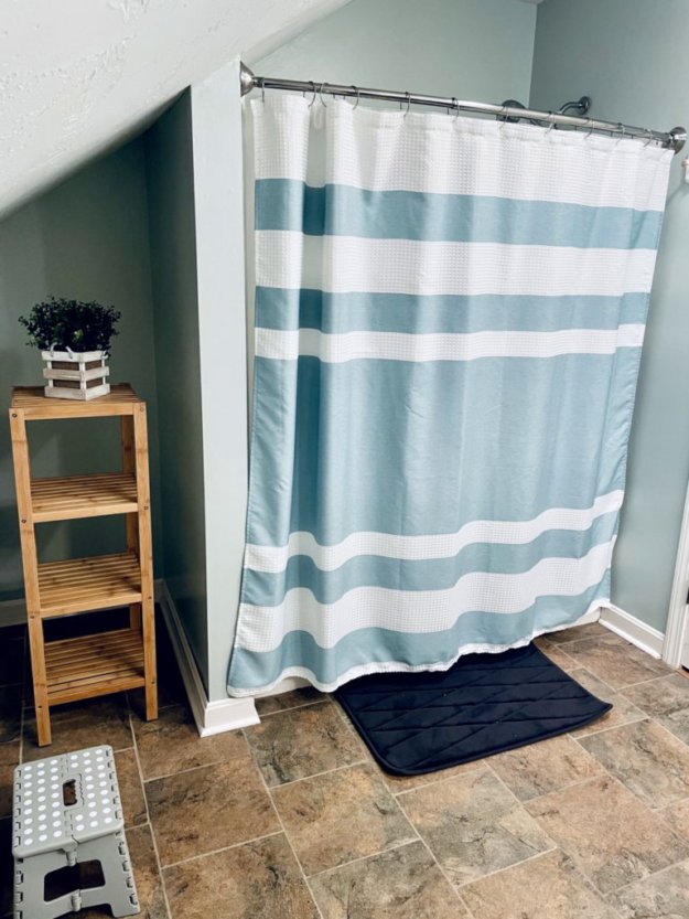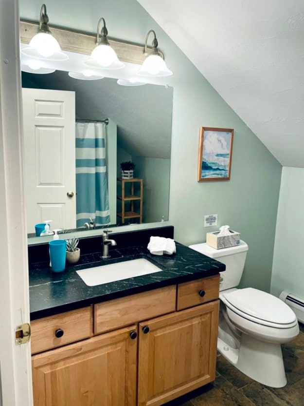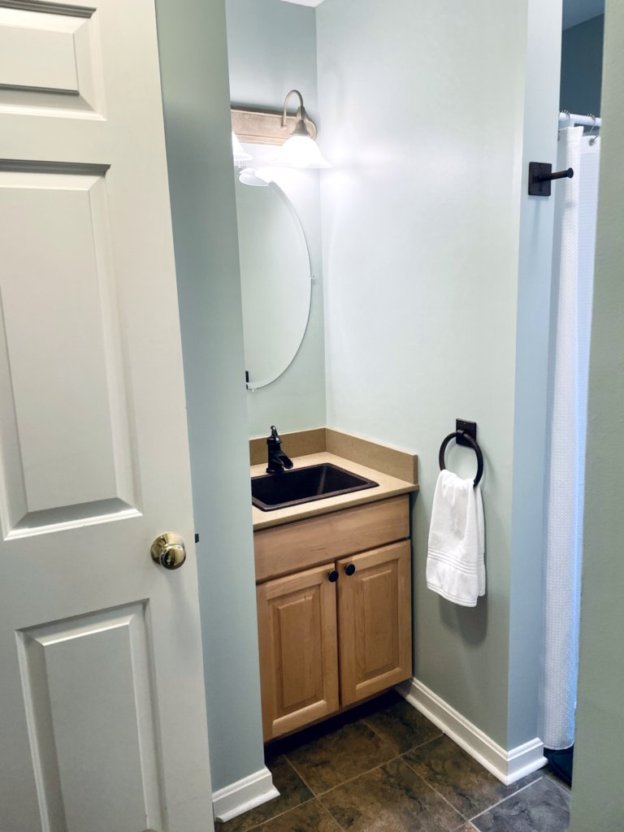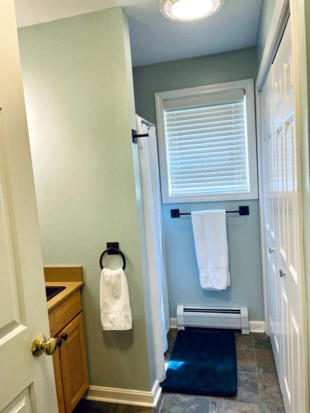 BATHROOM: Full bath with bath tub and shower combination, and step stool for little ones.