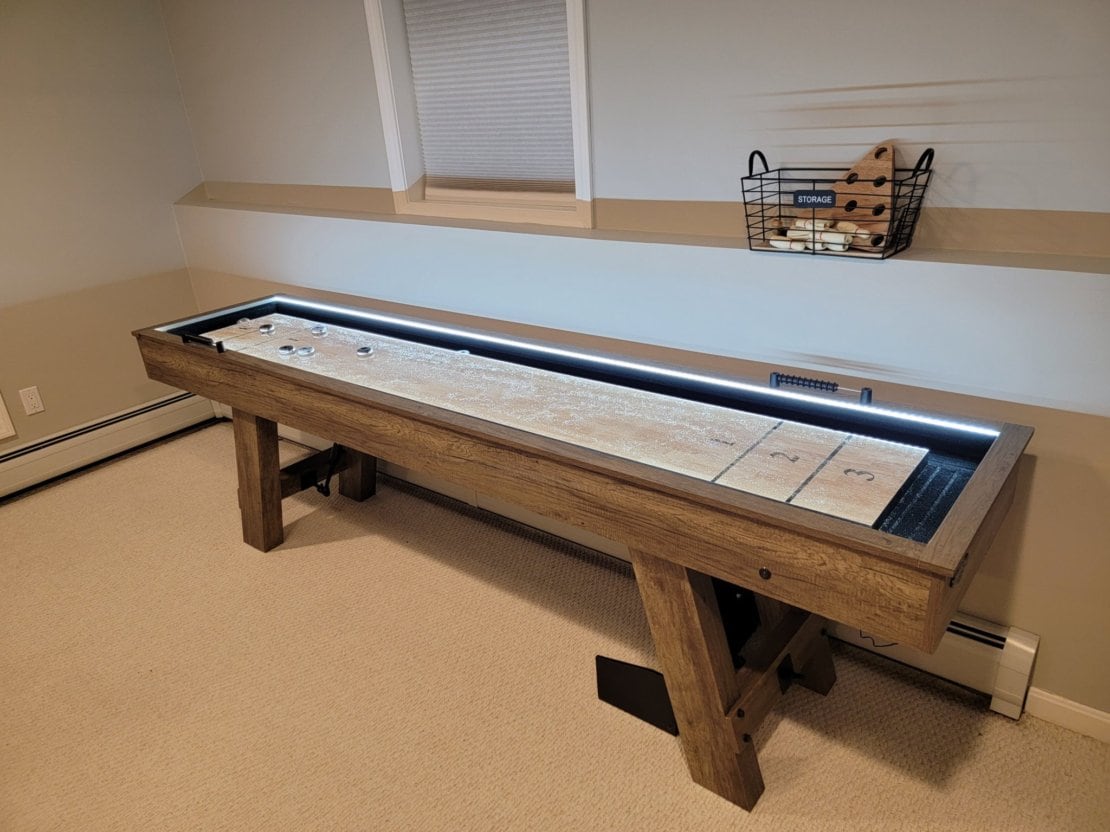 FAMILY GAME ROOM: Large family game room with two couches, large flat screen Smart TV, shuffleboard table including a bowling game option that keeps kids entertained for hours, RingO, and a direct view of the lake as well as a convenient Half Bathroom.