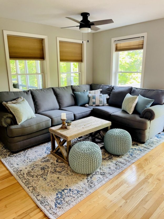 LIVING ROOM: Comfortable sectional couch, coffee table, large flat screen Smart TV for your favorite streaming services, blankets for snuggling.